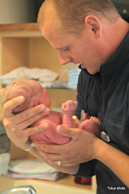 Daddy holding his son for the first time..such instant love. The theme is "boys" and I love how this man is looking at his new son.